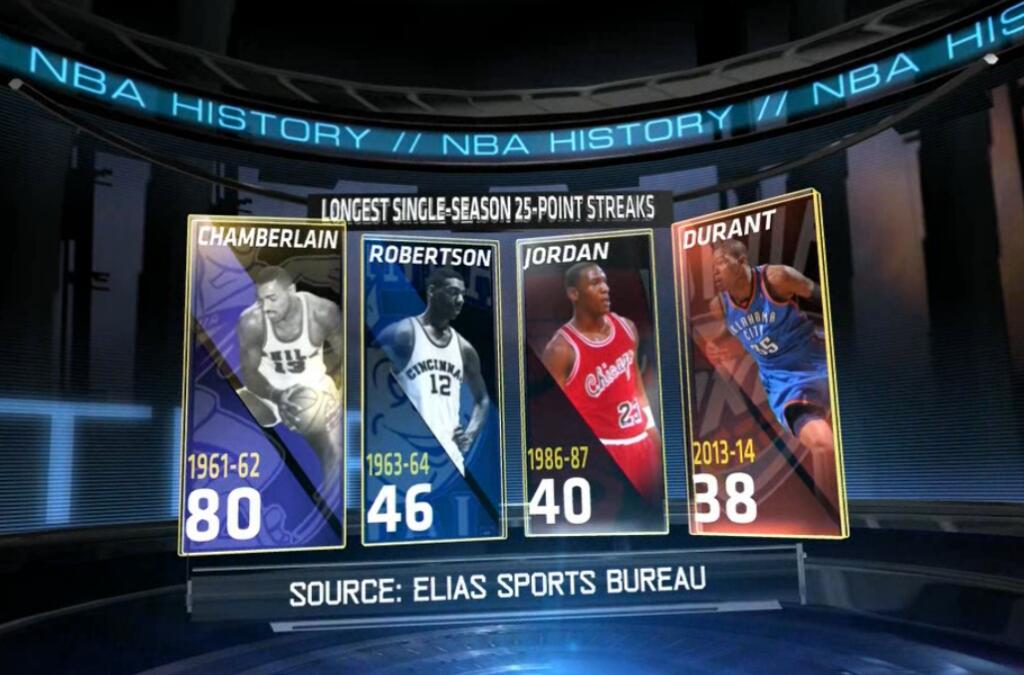 Sportscenter On Twitter Icymi Kevin Durant Dropped 25 Points For The 38th Consecutive Game This Season This Puts Him In Elite Company Http T Co Hyxrmkxkem Twitter